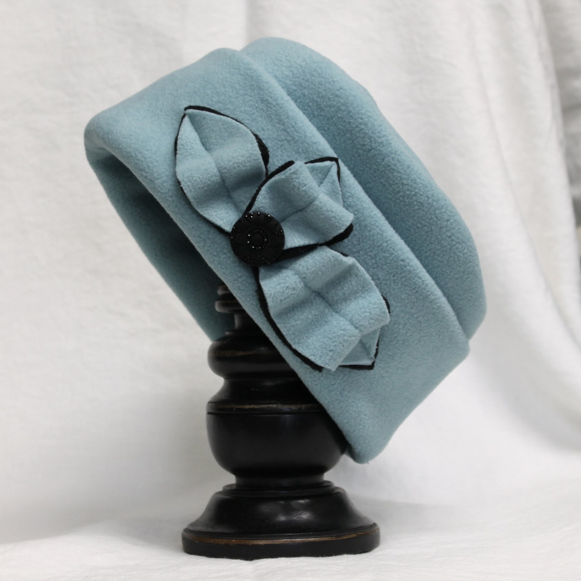 Soft, comfy, and a little stretchy polar fleece hat. Customers tell me they love them because these hats stay on your head! They won't slide up and off.