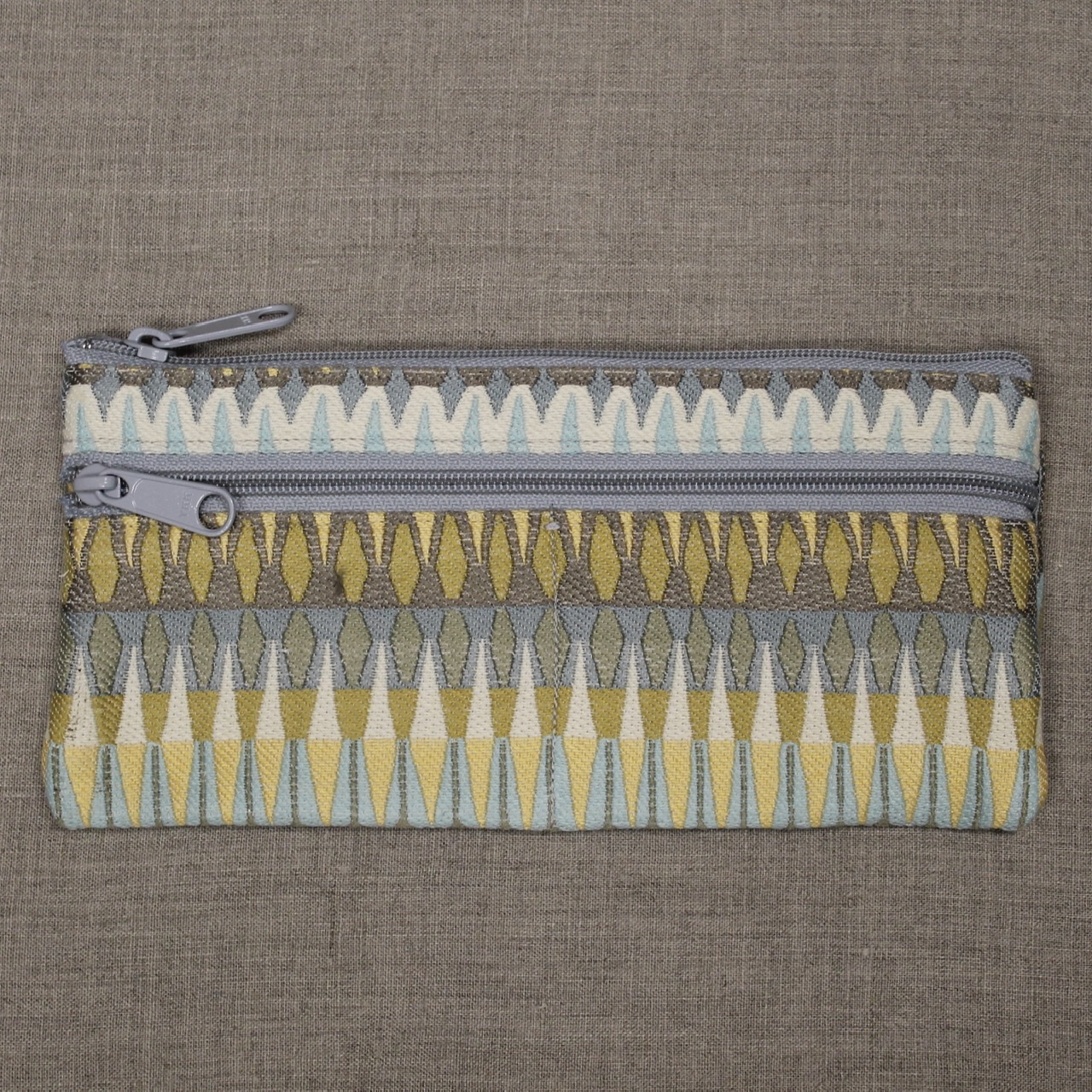 Prairie Sun Design wallets can hold any number of things--money and cards, cosmetics, colored pencils. There is a top zip that opens into the pouch body. There's also a side zip, with a seam sewed halfway across the pocket so that the side pocket is split into two pockets, each big enough to hold credit cards. Also good for coins, or little stuff like I keep in mine: earrings and hair elastics.