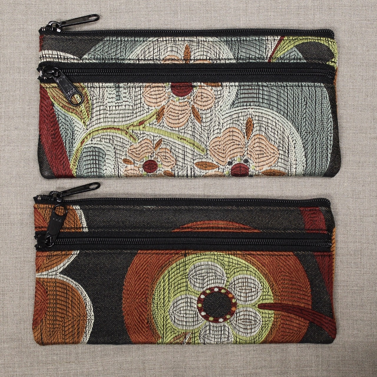 Prairie Sun Design wallets can hold any number of things--money and cards, cosmetics, colored pencils. There is a top zip that opens into the pouch body. There's also a side zip, with a seam sewed halfway across the pocket so that the side pocket is split into two pockets, each big enough to hold credit cards. Also good for coins, or little stuff like I keep in mine: earrings and hair elastics.