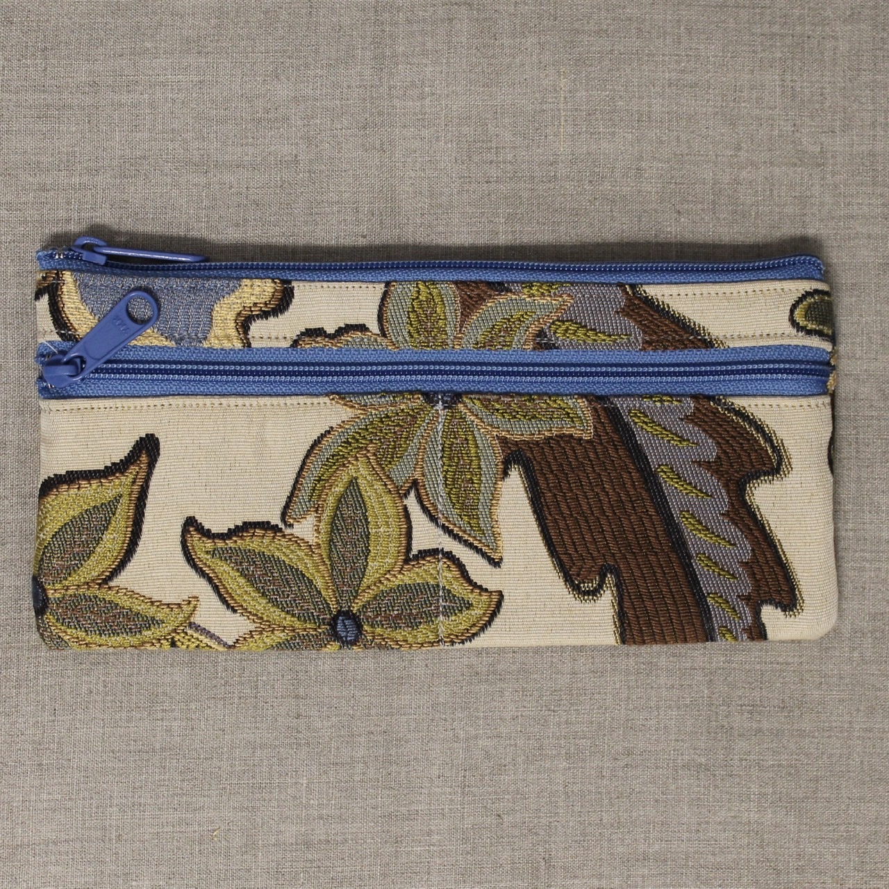 Prairie Sun Design wallets can hold any number of things--money and cards, cosmetics, colored pencils. There is a top zip that opens into the pouch body. There's also a side zip, with a seam sewed halfway across the pocket so that the side pocket is split into two pockets, each big enough to hold credit cards. Also good for coins, or little stuff like I keep in mine: earrings and hair elastics.