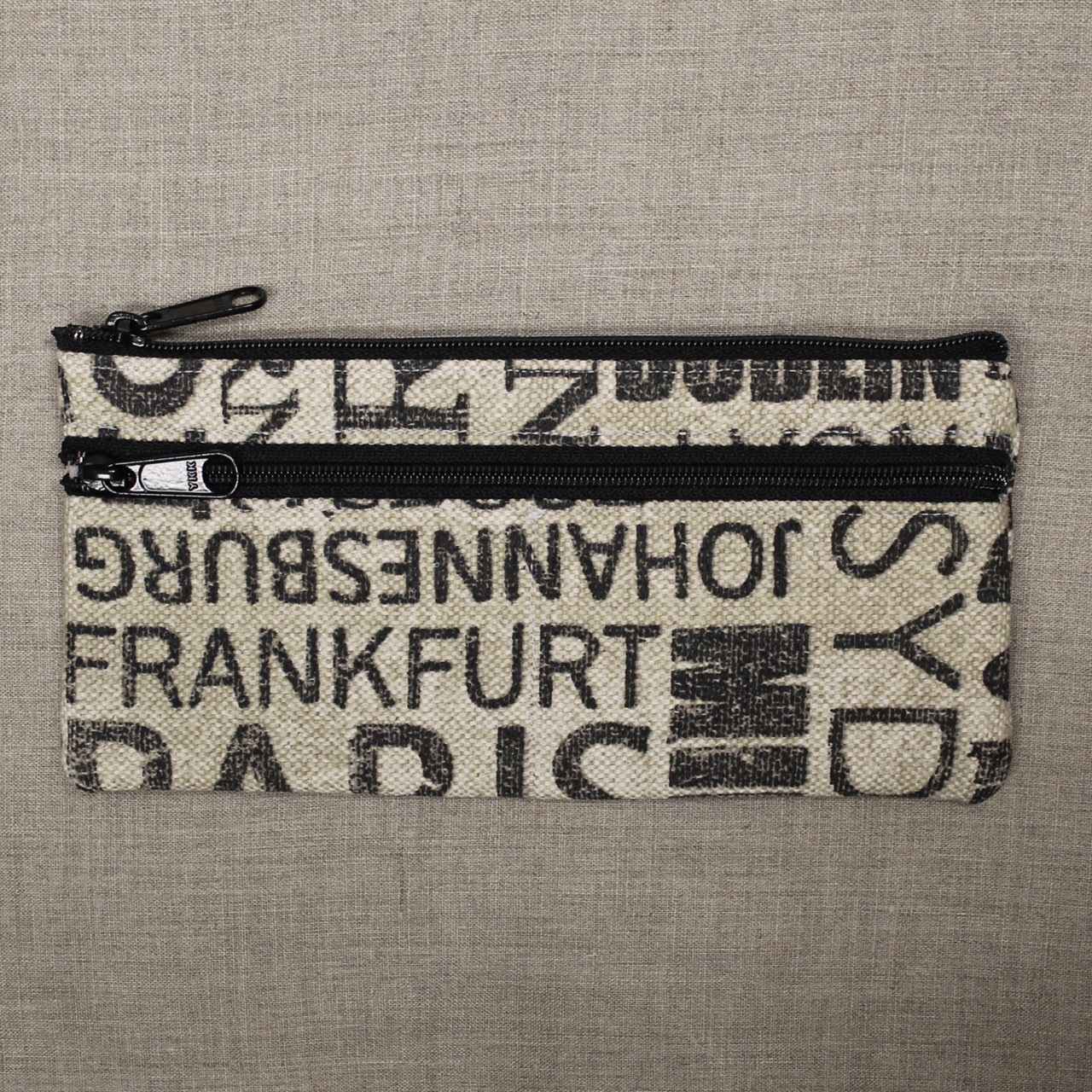 Prairie Sun Design wallets can hold any number of things--money and cards, cosmetics, colored pencils. There is a top zip that opens into the pouch body. There's also a side zip, with a seam sewed halfway across the pocket so that the side pocket is split into two pockets, each big enough to hold credit cards. Also good for coins, or little stuff like I keep in mine: earrings and hair elastics.