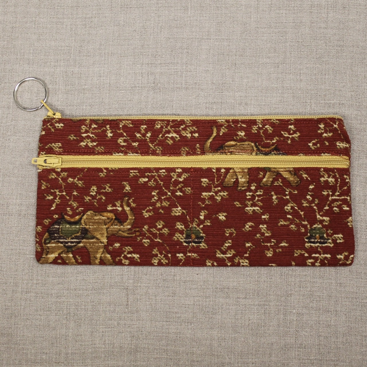 Prairie Sun Design wallets can hold any number of things--money and cards, cosmetics, colored pencils. There is a top zip that opens into the pouch body. There's also a side zip, with a seam sewed halfway across the pocket so that the side pocket is split into two pockets, each big enough to hold credit cards. Also good for coins, or little stuff like I keep in mine: earrings and hair elastics.