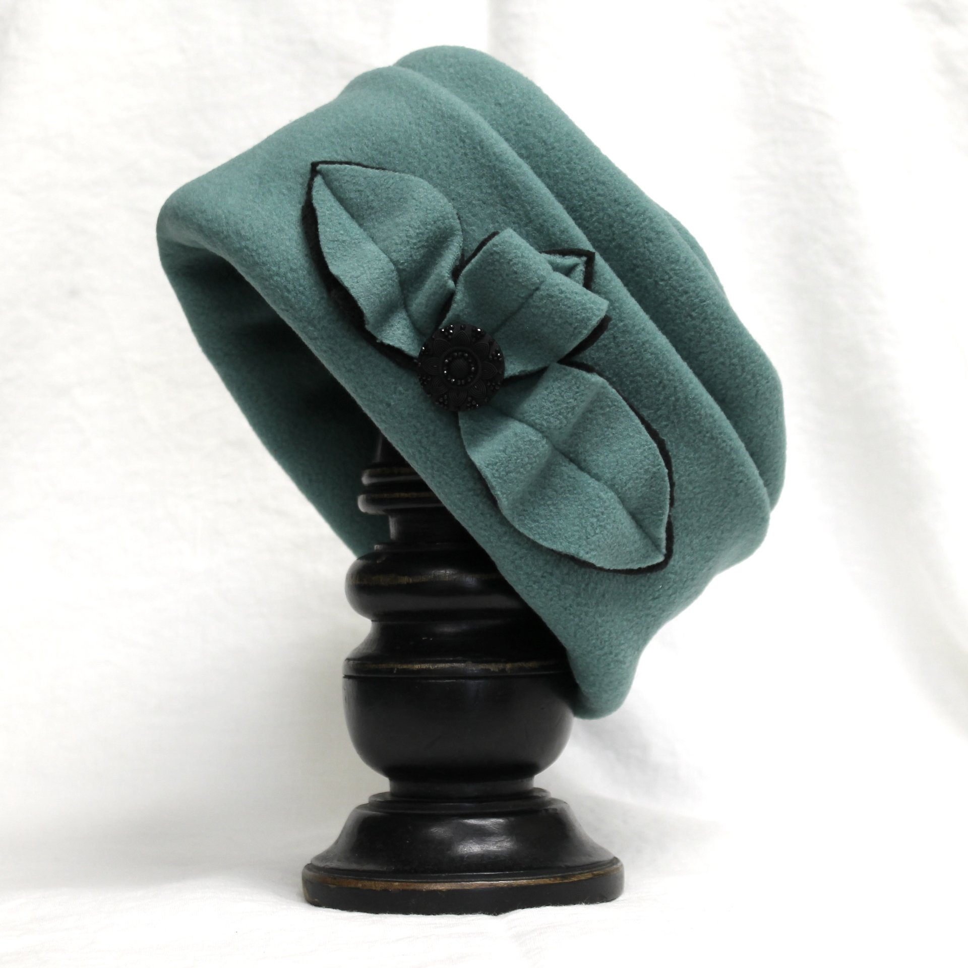 Soft, comfy, and a little stretchy polar fleece hat. Customers tell me they love them because these hats stay on your head! They won't slide up and off.